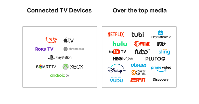Another acronym that you might hear used with CTV is OTT. While these terms are connected, they're not quite the same thing. Again, CTV are the devices.